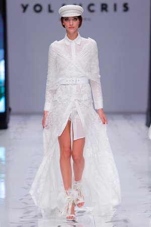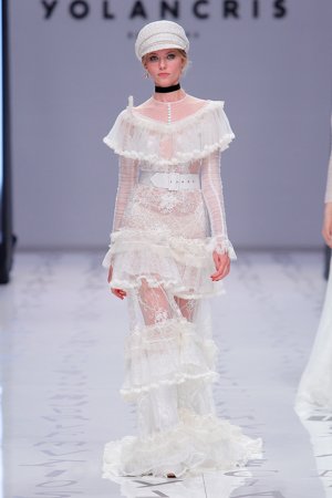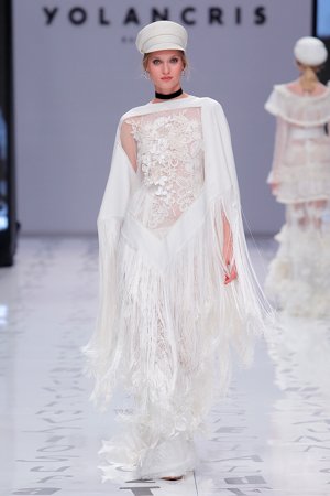 YolanCris für mich ist genau DAS: Freiheit zu sein wie man will. Sich über keine Normen zu identifizieren. Die Brautkollektion ist wieder einmal nicht bloss eine Sammlung von hübschen Kleidern sondern viel mehr eine Kunstaustellung. Was ich bei so vielen Labels jedes Jahr aufs Neue sehe nämlich wie wenig sich die Kollektionen von Jahr zu Jahr unterscheiden. Manche Designer setzen überhaupt gern die copy-paste Schere an und denken sich das war’s. Bei YolanCris sieht man Künstler am Werk. Kann schon sein, dass in unseren Breitengraden diese Mode als „untragbar“ gilt und sich zu wenig Bräute trauen unkonventionelle Mode zu tragen aber das heisst ja nicht, dass ich nur Pronovias, Rosa Clara & Co zeigen muss! Nein, ich darf auch Kunst zeigen und die eine oder andere Braut findet vielleicht die eine oder andere Inspiration und wag es anders zu sein.
