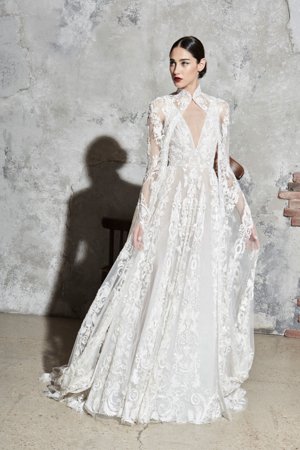 Zuhair Murad liess sich für die aktuelle Brautkollektion stark von spanischer Folklore und Tradition beinflussen. Schwere Spitze, markante Formen, die an Matadoren und Flamencotänzer erinnern.